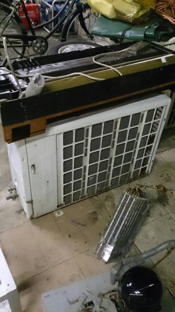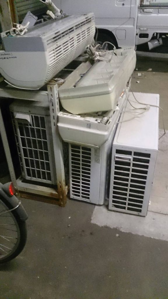 通常は新しく買いかえる際に家電販売店が古いエアコンを回収,処分しますが、なんらかの事情により軒下に放置されたままのエアコンなどを当店で回収しております。