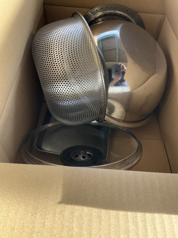来てくれた回収スタッフさんが、割れないようにする為かケースに食器を詰めていき、あれよあれよという間に運び出していきました。